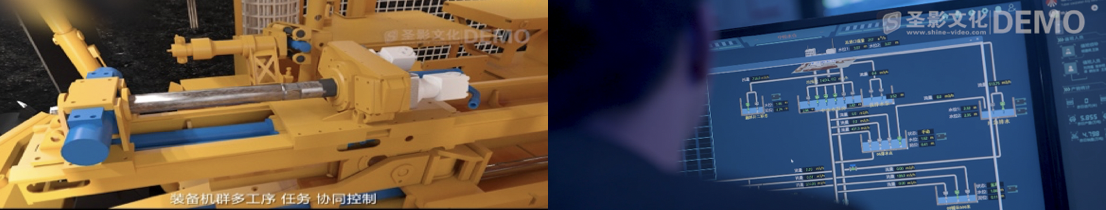 “当数据会思考,纷繁复杂的工业运行,纵横交错的井下勘采,必将改写”我们用抽象的信息数据线条引入智慧,为影片整体呈现打好一个“智慧化”的前站和基调。
